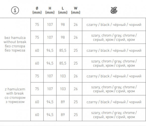 Опора колесная с фланцем, GIRA, D60мм без тормоза, черное/хром KM-GIRA-60мм-BH-20