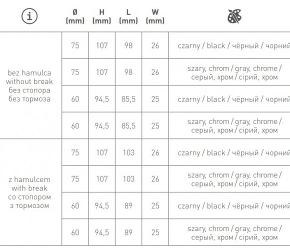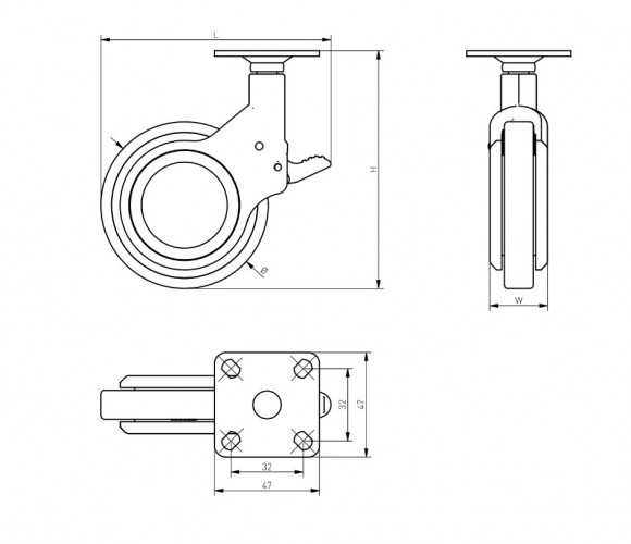 Опора колесная с фланцем, GIRA, D60мм с тормозом, черное/хром KM-GIRA-60мм-ZH-20