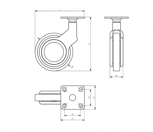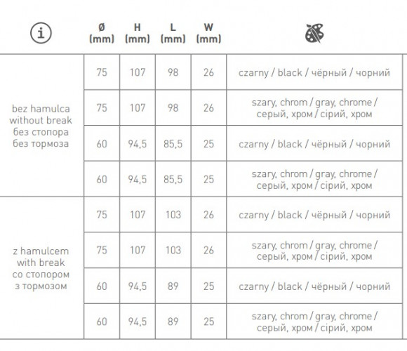 Опора колесная с фланцем, GIRA, D75мм без тормоза, черное/хром KM-GIRA-75мм-BH-20