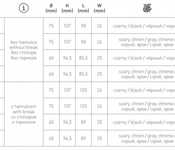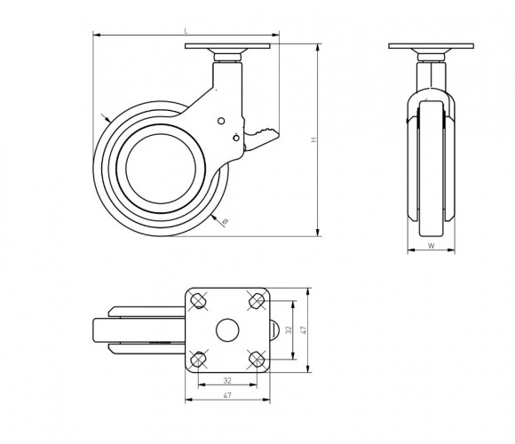 Опора колесная с фланцем, GIRA, D75мм с тормозом, черное/хром KM-GIRA-75мм-ZH-20