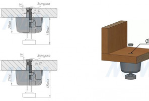 Опора мебельная регулируемая черная D50 H=27мм, регулировка 21мм, М8