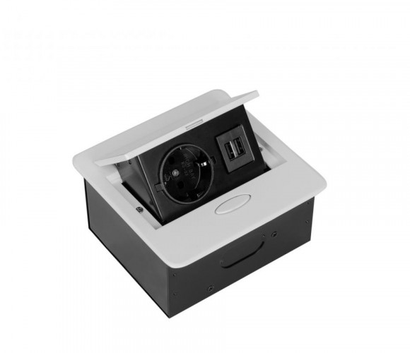Встраиваемый настольный удлинитель от SETE на 1 евро гнездо и 2 USB разъема хорошо смотрится в любых дизайнах интерьера.