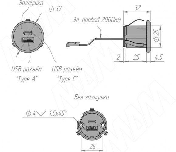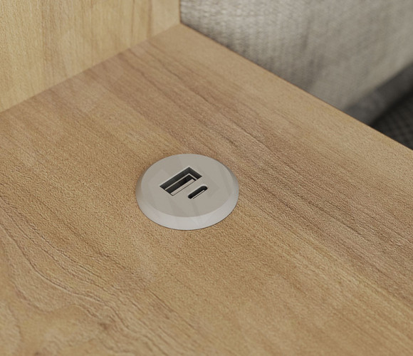 USB-розетка легко монтируются в различные виды корпусной и мягкой мебели.