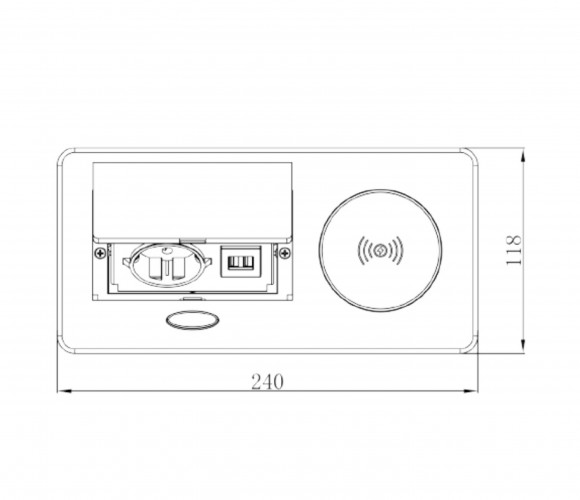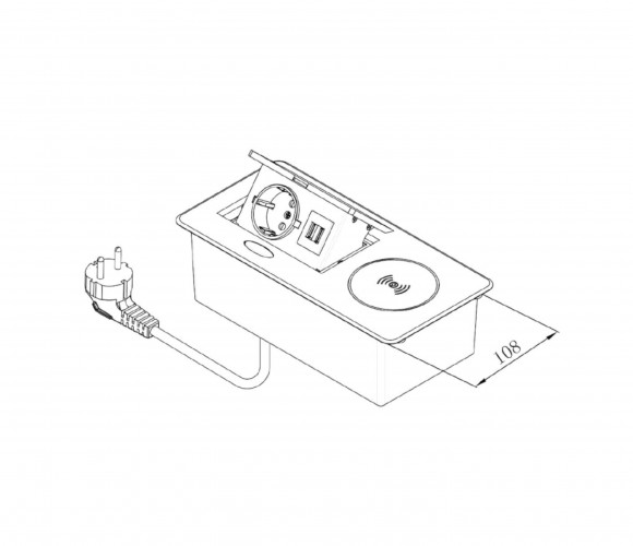 Удлинитель встраиваемый настольный, 1 гнездо, 1*USB, 1 type C, беспроводная зарядка, серый SETE SBT-1UCWT-80