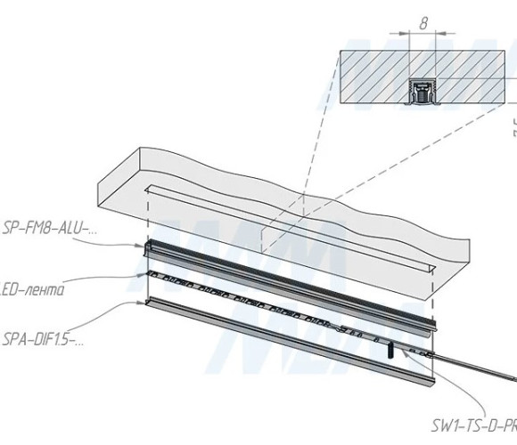 Способ установки: устанавливается непосредственно в алюминиевый профиль под светорассеивающий экран