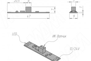 Выключатель на взмах руки, в профиль, диммируемый 12/24V 60/120W  SW1-MS-PR-1