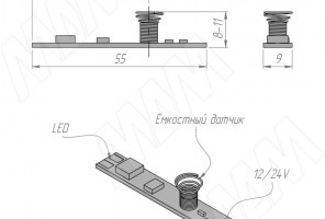 Выключатель сенсорный диммируемый, в профиль 12/24V 60/120W SW1-TS-PR-1