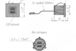 Розетка с выключателем врезная меб. мод. 001-2, 86х86мм 11.102.10.011