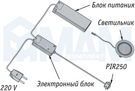 Датчик движения PIR 250 (15сек-3мин), 220V, 250W, макс.2.5м, каб 1,5м / 08.132.01.250