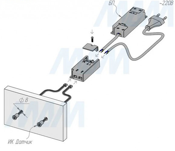 Применение: инфракрасный выключатель «на взмах руки» используется, как правило, для реализации подсветки рабочей зоны на кухне.
