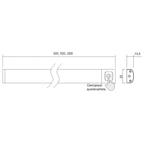 Светильник LED LANIA с сенсор.выкл., 520х25х13,5мм, 10Вт, 4000К, 12VDC, 600 Лм, белый/04.010.20.411
