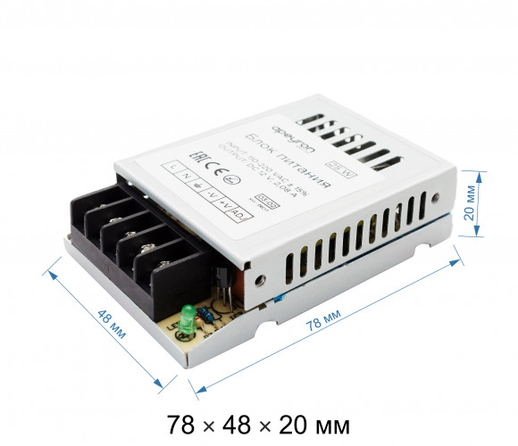 Блок питания Apeyron 12В, 25Вт, IP20, 2А, металл, 78*48*20мм 03-02