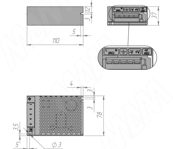Применение: для подключения светодиодной ленты и других светодиодных источников с рабочим напряжением 24 В к сети 220 В