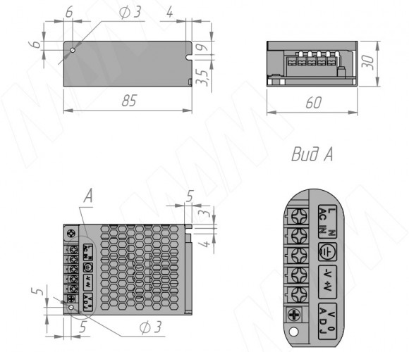 Применение: для подключения светодиодной ленты и других светодиодных источников с рабочим напряжением 24 В к сети 220 В