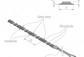 Светодиодная лента фигурная 2835/120 12V, 9,6W, ширина 6мм, холодный LS12-2835CW20-96-S