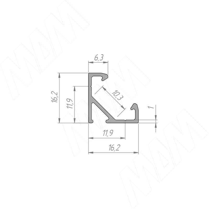 Профиль под свет. ленту СМ1 угловой, серебро, 16х16мм,L-3000 LSP-CM1-ALU-3-AL, (без рассеивателя)