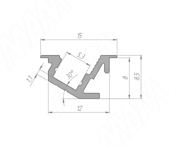 Профиль FМ10 врезной угловой узкий, для ленты с основ. 5мм. белый мат,15х8,5мм L-3000 LSP-FM10-ALU-3000-WHM (без рассеивателя)