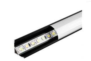 Профиль алюм. для светодиодн. лент, Угловой 16*16мм, L-2м ЧЕРНЫЙ с матовым экраном, загл. и крепежом LR49-МBL