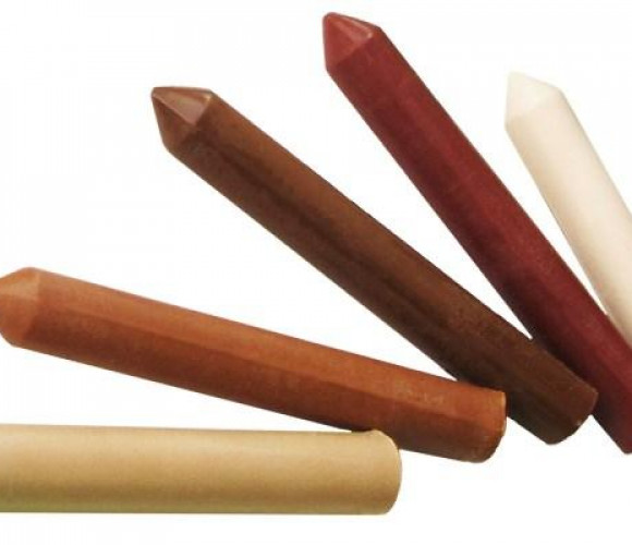 Карандаш мебельный - реставрационный материал, используемый для оперативного устранения мелких и средних дефектов (царапины, трещины, сколы, швы, стыки) на поверхностях из массива дерева и древесных плит (ЛДСП, МДФ, фанера), а также на ламинате, плинтусе, паркете и пластике.