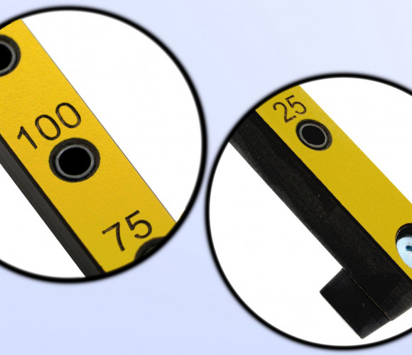 Мебельный кондуктор укороченный МК-10 предназначен для сверления отверстий 5 мм в торце плиты 16 мм с шагом отверстий 25/50 мм. (можно сверлить плиты и другой толщины с использованием переходников)