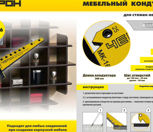 Мебельный кондуктор "угольник малый" шаг 25/50 диам. втулки 7 мм МК-16
