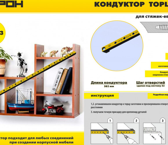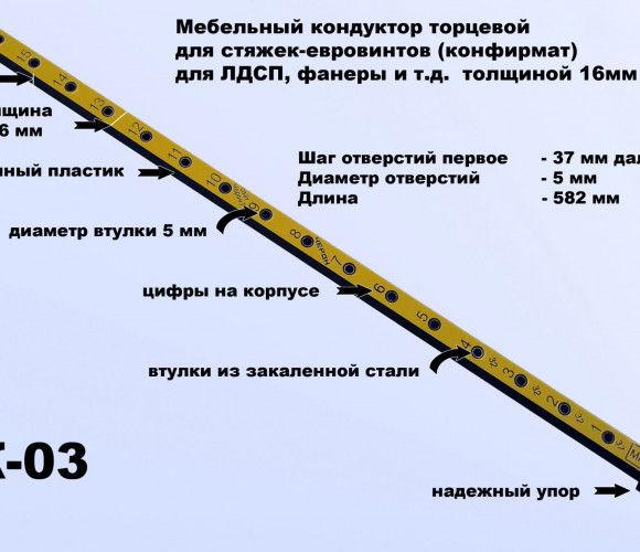 Мебельный кондуктор торцевой, шаг 32 мм диам. втулки 5 мм МК-03