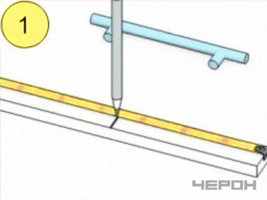 - Для разметки нужно отметить центр ручки на дверце и спозиционировать по среднему носику.