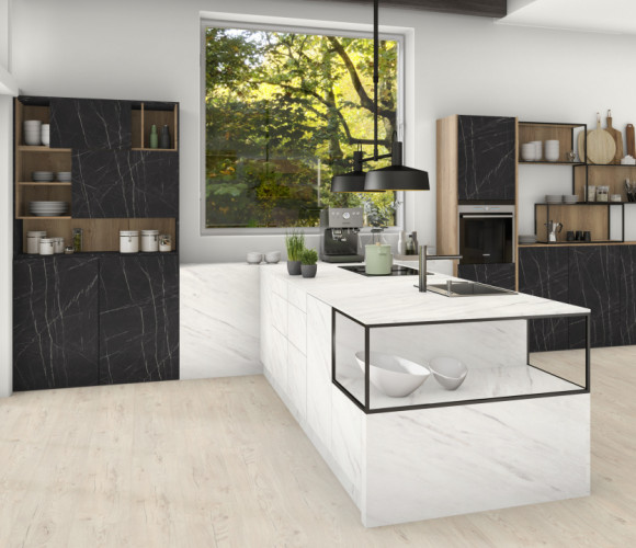 Декор Мрамор Леванто белый за счёт своего очень сдержанного рисунка на любых поверхностях кухни смотрится особенно благородно. Этот ретро-материал снова входит в моду в современных интерьерах и комбинациях. Элегантный кристаллический рисунок мрамора и увеличенный раппорт в формате XL придают декору ещё более натуральный внешний вид и позволяют использовать его также на больших поверхностях стен во внутренней отделке. Структура ST9 Мягкий матовый придаёт поверхности декора соответствующую элегантность и матовость на ощупь..