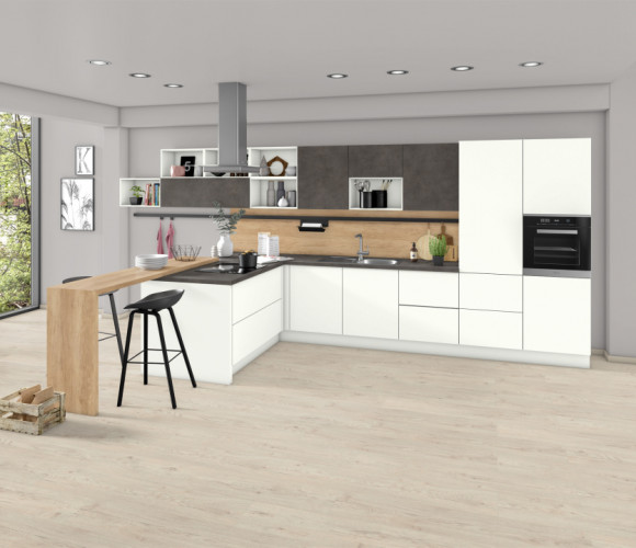 Рисунок декора Дуб Небраска имеет вид очень шероховатой и выветренной поверхности. Цветовой оттенок натуральный однороден на всей поверхности и хорошо смотрится и в современном дизайне интерьера. Благодаря структуре ST10 Шероховатые глубокие поры при прикосновении к поверхности, которая внешне смотрится шероховатой, создаётся ощущение натурального материала.