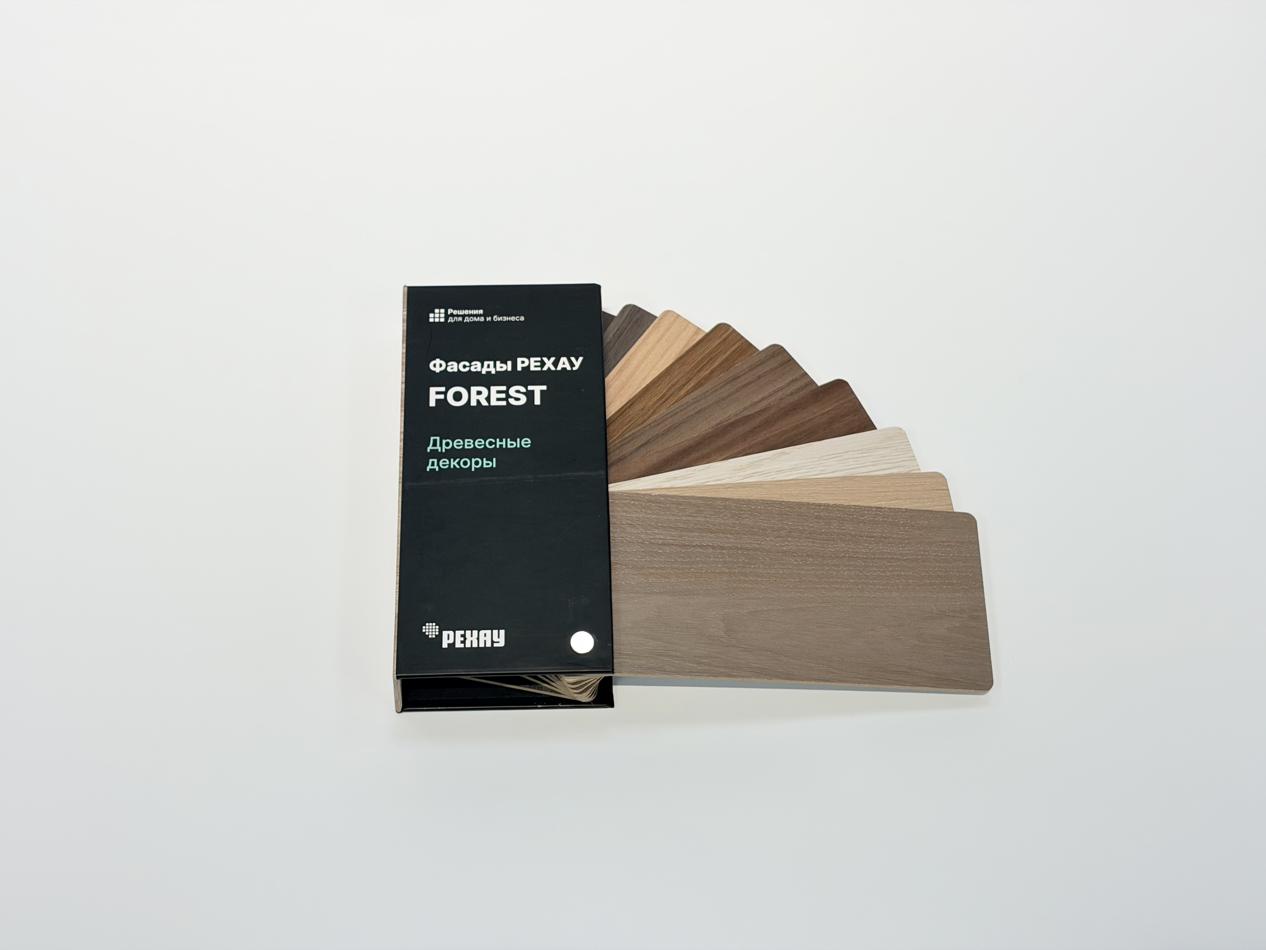 Веер c образцами фасадных полотен Рехау Forest (10 декоров)
