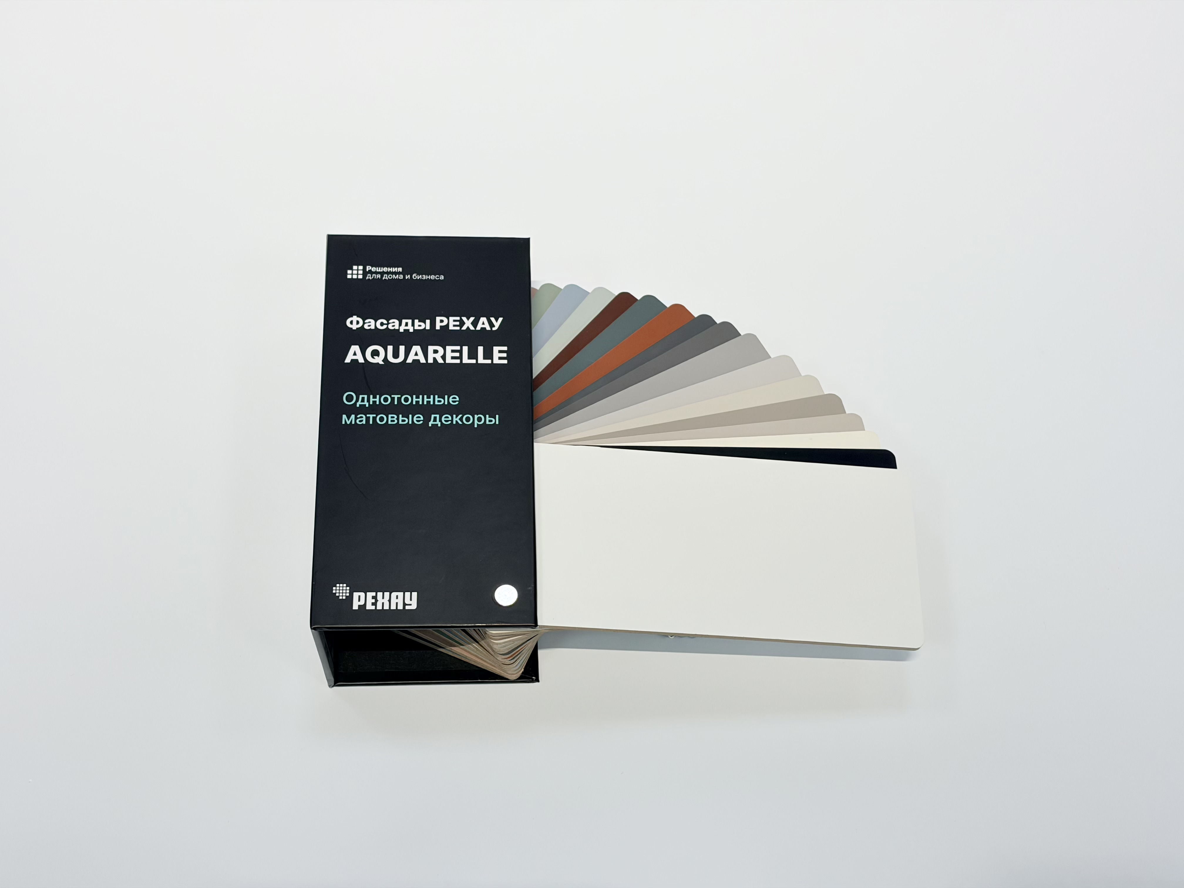 Веер c образцами фасадных полотен Рехау Aquarelle (18 декоров)