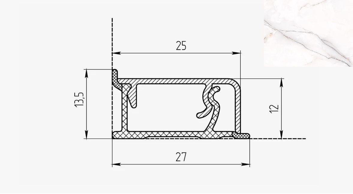 Плинтус КВАДРО Д FS125 S1 Мрамор Ольхон 27*13*4200мм