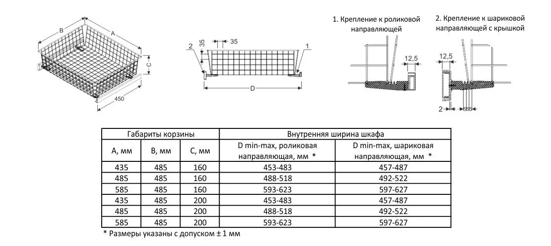 Корзина сетчатая 585х485х120мм ХРОМ (524)