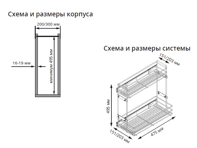 Cargo mini 200 мм Starax 2-х.ярусная, (151*475*495) антрацит, правая S-2423-А