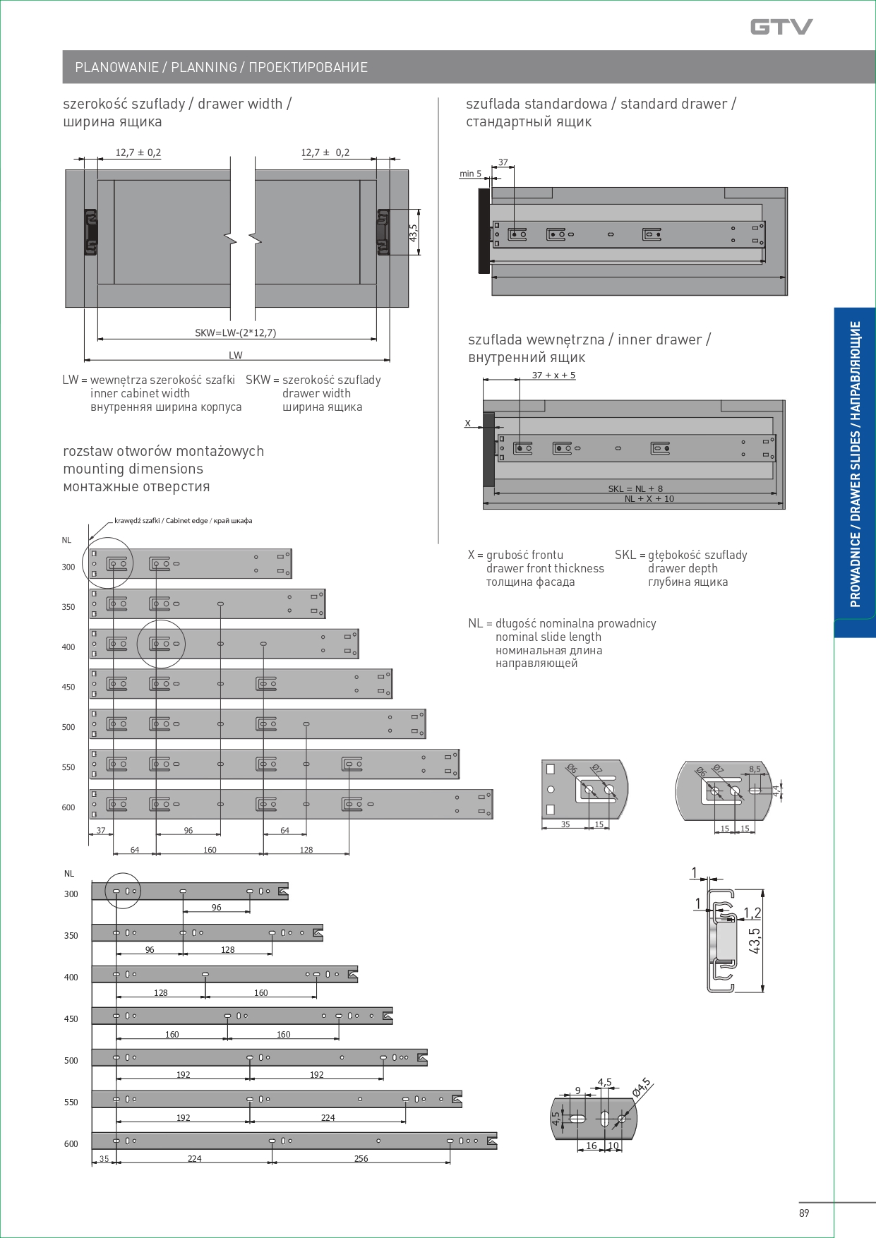Направляющие шариковые PK-P-H45-350-GX с выталкивателем - функциональная фурнитура, механизмы для выдвижных ящиков, используемые в кухонных гарнитурах, гардеробных, офисной и специализированной мебели.