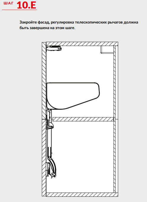 - Регулировка нижнего фасада: по высоте (+/-3 мм) – по ширине (+/-2 мм) – по глубине (+/-2 мм)