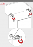 - Регулировка верхнего фасада:  по высоте (+/-2 мм) – по ширине (+/-2 мм) – по глубине (+/-2 мм)