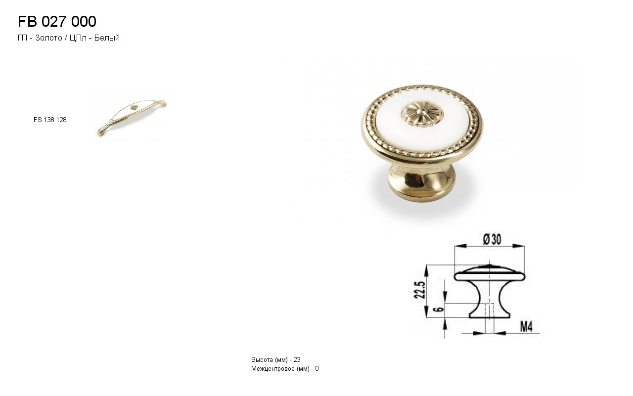 Ручка - грибок FB 027000 Золото глянец/белый (ТЗ)