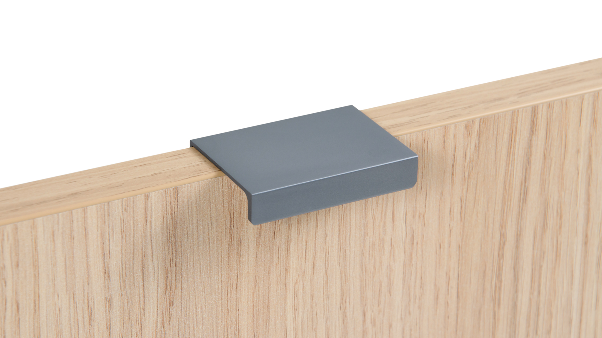 Ручка имеет богатую палитру цветовых решений и разнообразие длин. Данная модель допускает размещение двумя способами — «в размер» фасада и по центру широких фасадов (как большой «язычок»).